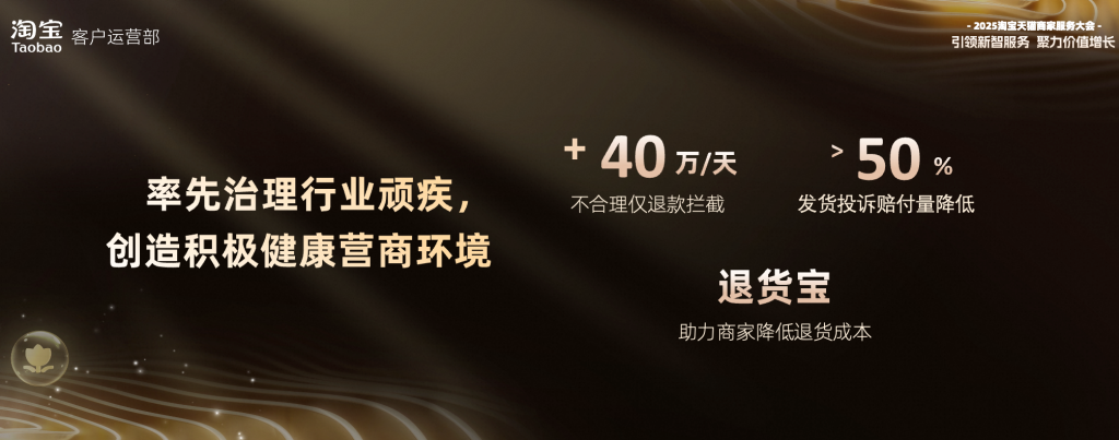 在2024年于电商行业率先松绑“仅退款”、推出“退货宝”后,淘宝再次“上新”数十项营商环境优化举措,保障商家权益。