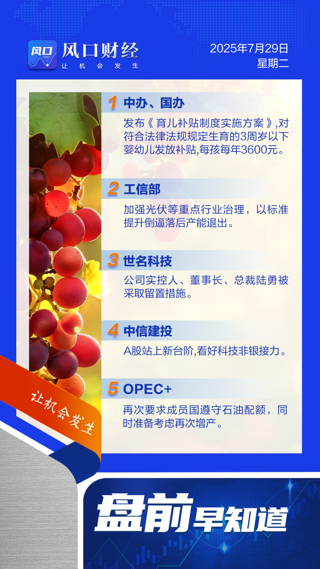 A股盘前:国家育儿补贴方案发布;世名科技董事长陆勇被采取留置措施