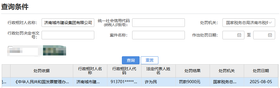 未按规定时限开具约40亿元增值税发票,济南城市建设集团有限公司被罚