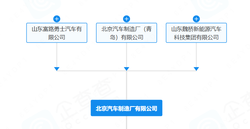 企查查信息显示,北京汽车制造厂有限公司股东包括山东富路勇士汽车有限公司、北京汽车制造厂(青岛)有限公司和山东魏桥新能源汽车科技集团有限公司。