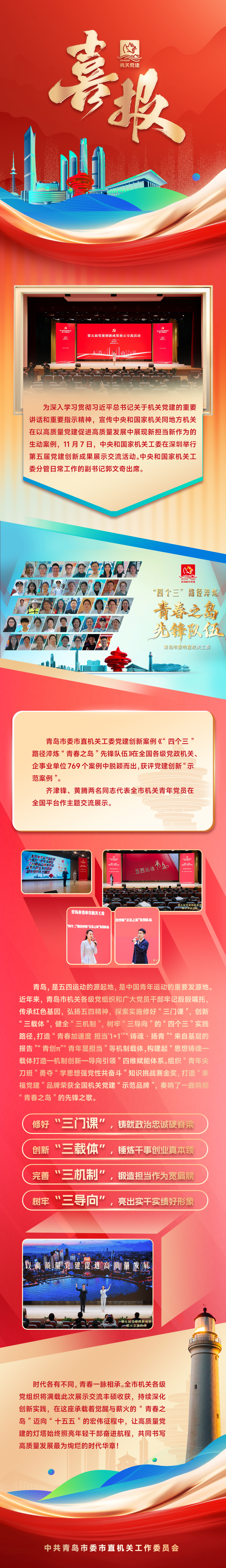 近年来,青岛市委市直机关工委坚决贯彻落实习近平总书记关于加强年轻干部教育引领的重要讲话和重要指示批示精神,创新探索“四个三”实践路径,淬炼“有理想、敢担当、能吃苦、肯奋斗”的青年先锋队,奏响了一曲以高质量党建促进高质量发展的青春之歌。