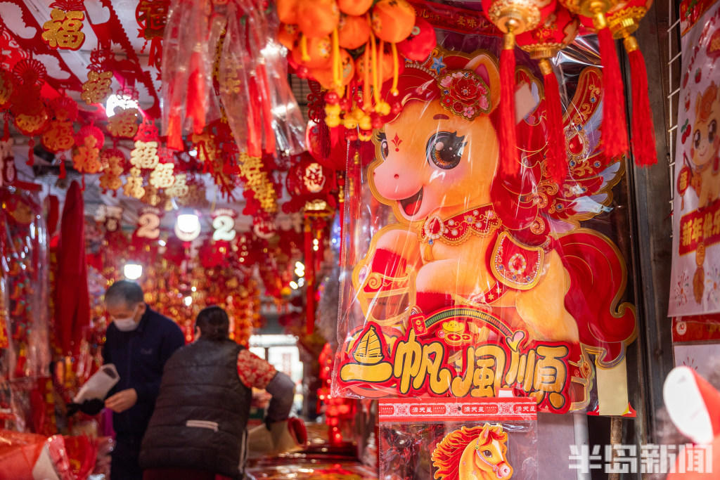 走进市场,一家家节庆饰品店把各色福字、灯笼、对联、挂饰等集中展示,构成了一道颇具“烟火气”的喜庆风景。农历马年即将到来,马年吉祥、马到成功等主题的春节饰品成为最受消费者喜爱的商品。