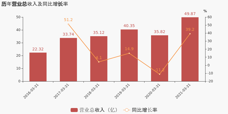 一季报显示,公司2021一季度营业成本38.6亿,同比增长47.5%,高于营业收入39.2%的增速,导致毛利率下降4.4%。期间费用率为11.7%,较去年下降3%,费用管控效果显著。经营性现金流由8.8亿下降至-8845.1万,同比下降110.1%。